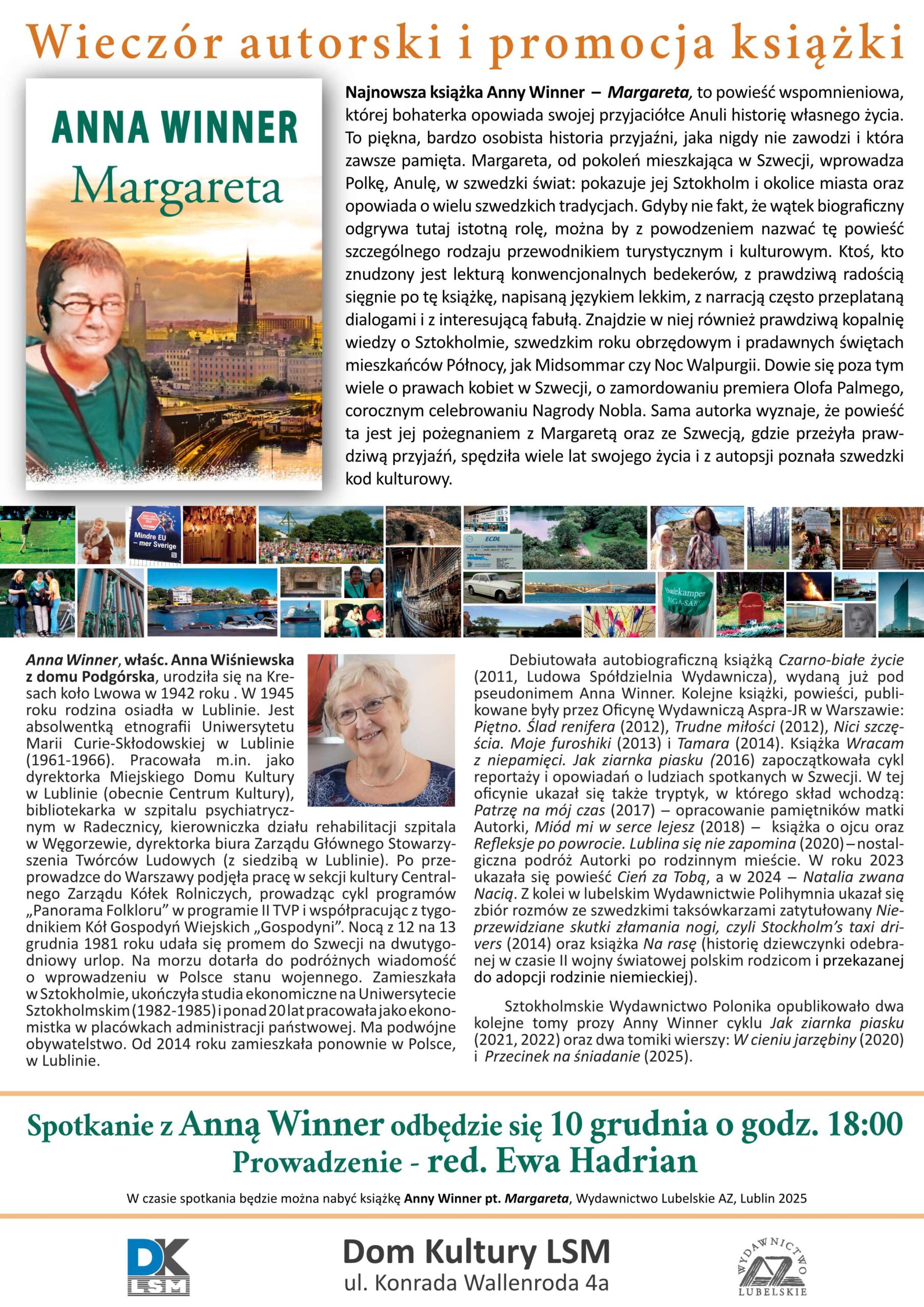 Strona główna SPOTKANIA Anna Winner „Margareta” – wieczór autorski